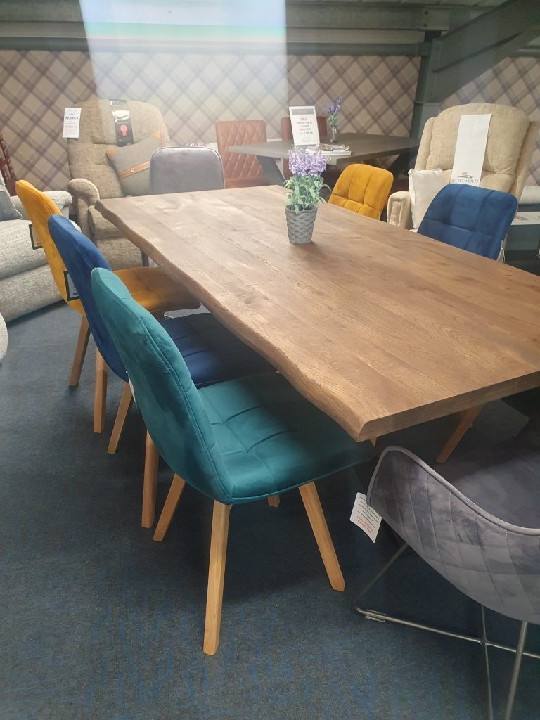 We have a wide selection of furniture across both stores. Different materials like Oak , painted wood and laminated pieces are available. We also house a sofa and chair company with the added option of motorisation. These are available in varying fabrics and leather.